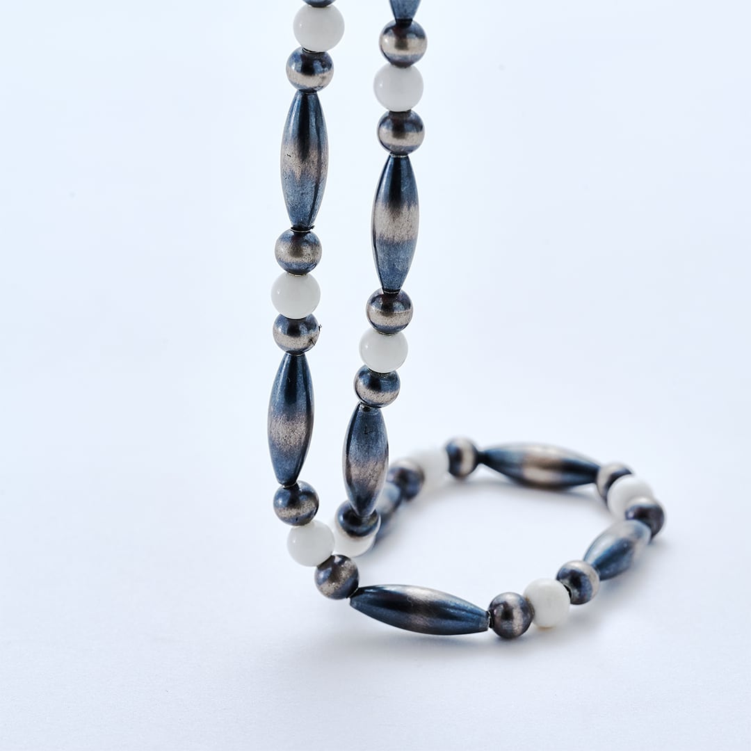 C-048 Breastplate Navajo Pearl Necklace(White onyx) (47cm)