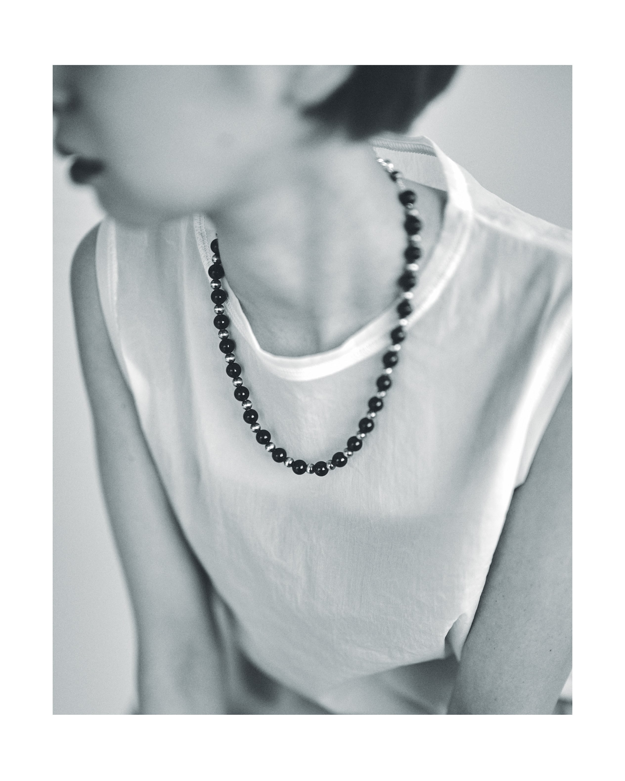 その精神を受け継ぎ、今期は素材を シルバーのボールとバー に置き換え、ブレスレット・リング・ネックレスへと昇華させています。