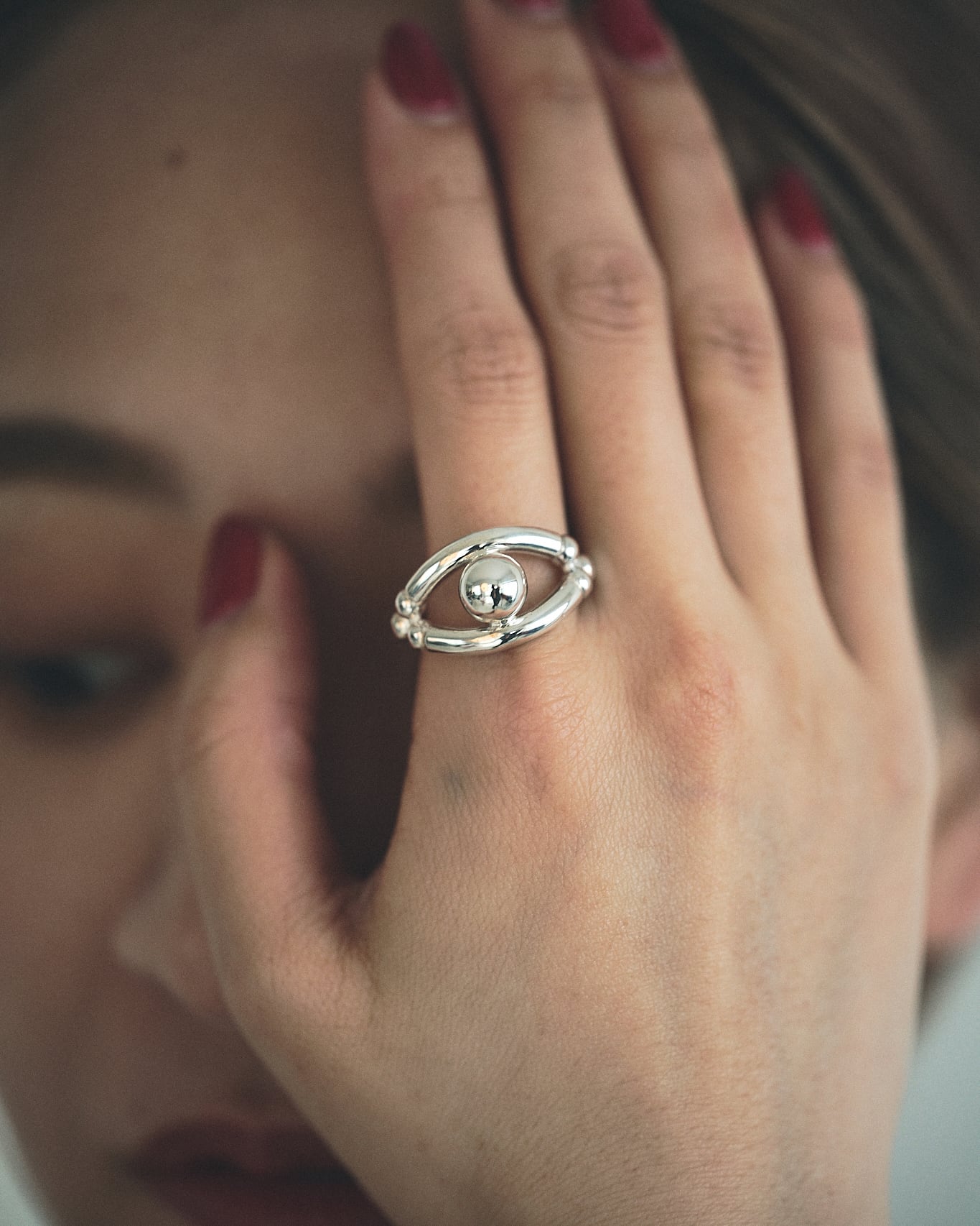 その精神を受け継ぎ、今期は素材を シルバーのボールとバー に置き換え、ブレスレット・リング・ネックレスへと昇華させています。