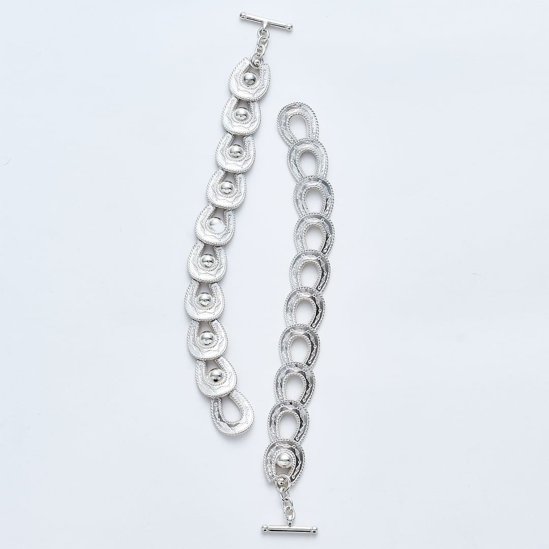 その精神を受け継ぎ、今期は素材を シルバーのボールとバー に置き換え、ブレスレット・リング・ネックレスへと昇華させています。