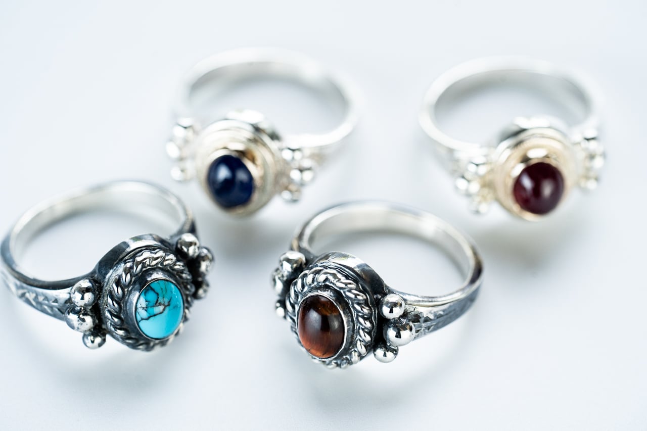 縄付きの覆輪はネイティブジュエリーで多く使われるデザインでもあり、様々なジュエリーに仕様されています。