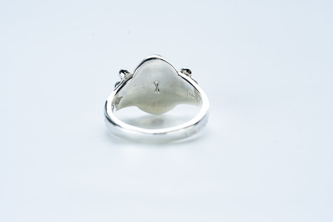 ネイディブオーバルシグネットリングはヨーロッパ由来のシグネットリングにネイティブジュエリーの要素を融合させたデザインが特徴のリングです。